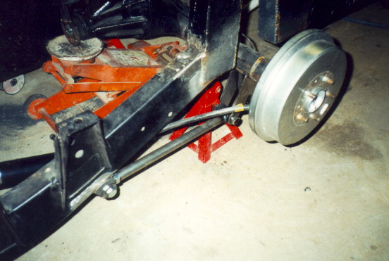 If you're satisfied with everything, put some really good tacks on every weld location and move the rearend through it's entire range of travel. Check for any binding and also the pinion angle. If any adjustments are needed, do them now and double check everything BEFORE you completely weld it up. Remove the bars and weld all the mounts, then add a coat of paint. When everything has cooled, reinstall the bars and the bags. Lastly, put the bed back on and trim the floor if necessary. The truck we used is a 1993 toyota reg-cab owned by brian dunn of memphis tennessee. We used a pete & jakes tri-angulated 4-link - the truck rolls 18" giovanna wheels and has 4-wheel bags w/ MIC fast manual valves. we only did the 4-link - not the bag set-up. tech work done by eric arrington & matt long @ KUSTOMWERKS - union city tn. kstmwrks@usit.net