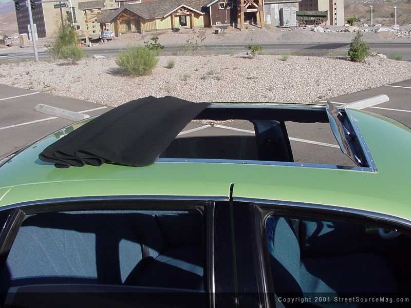 Before painting his Caprice, Jeremy decided that there was one more thing needing attention. Curing his hunger for sun, the installation of a 40x40 Britax sliding ragtop would allow the sun to shine bright throughout the interior of the Caprice. Central Paint and Body of Phoenix was responsible for all of the exterior modifications. Now truly ready for paint, Jeremy hauled the Caprice to Elite Collision of Tempe, Arizona to have Jimmy throw down his expertise. Utilizing the 2001 VW Bug sonic green paint, "The Grinch" was coming true to form.