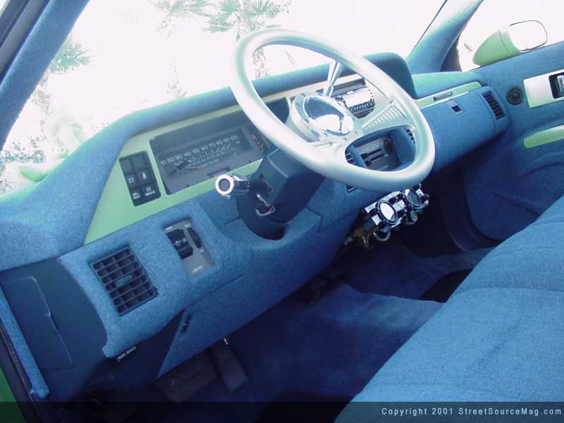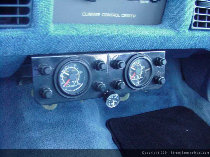 You can also find a Billet Specialty steering wheel mounted, along with Firestone gauges to keep an eye on the ride height.