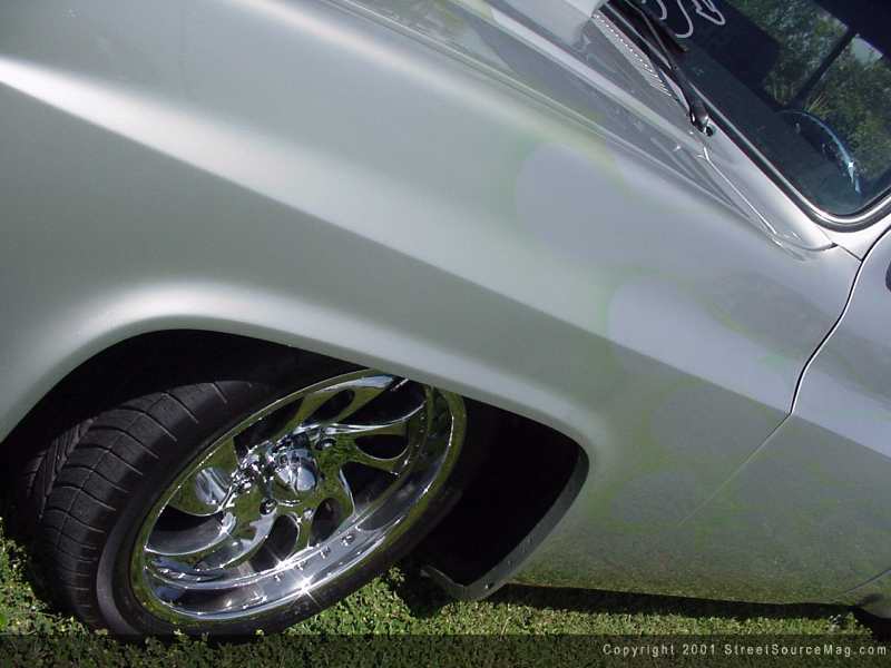 Finally, the captain's area of Bradley's Chevy needed to upgraded so the man himself could be comfortable while out cruising his trophy winning masterpiece. The factory dash was recovered in gray tweed and billet instrument panels were installed, giving the dash a much better appeal to the eyes. Also adding looks to this older model Chevy, silver and teal gauges from Brent Yawn Customz were installed. Seats from a Chevy Camaro were wrapped and installed, replacing the factory bench seat.