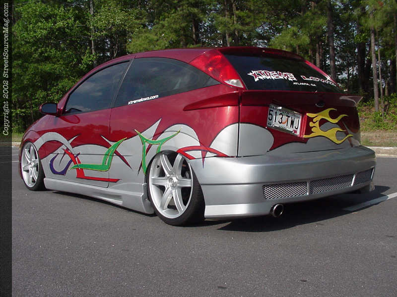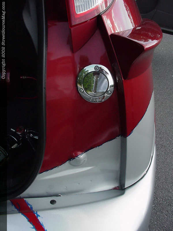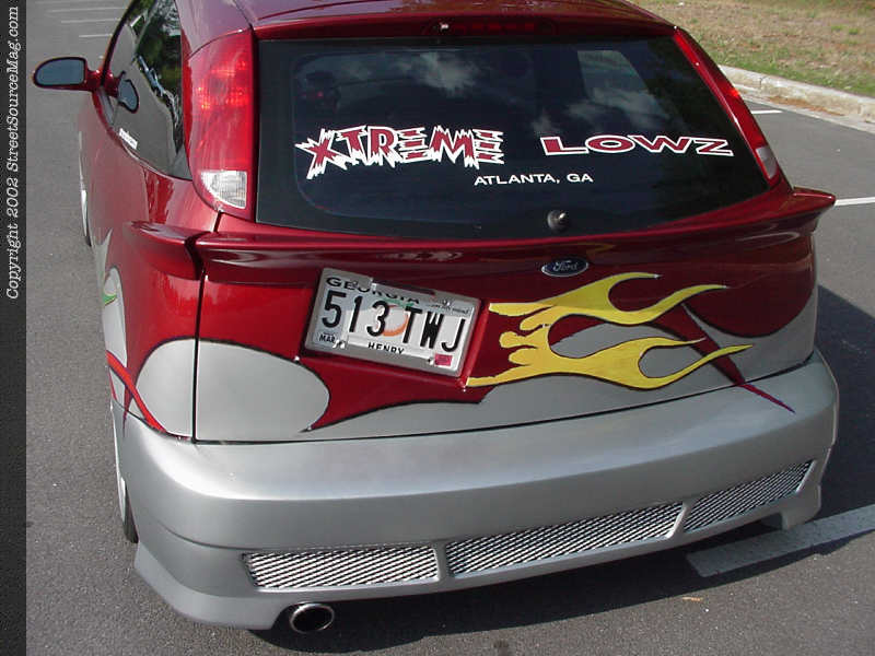 Howard wanted his Focus to have a smooth, overall appearance. With that in mind, Howard's Focus was smoothed from front to rear, including the emblems, moldings, rear hatch and door handles.  The gas filler door was shaved and new filler neck custom fit into that back hatch. Howard also frenched the license plate through the wing and bodyline for a one-off appearance.