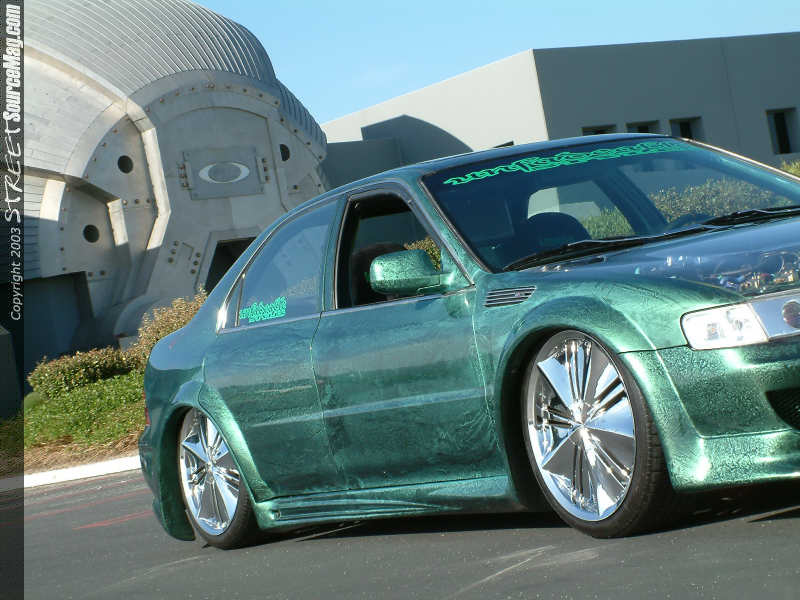 With the bodywork complete to Imani's expectations the car was then prepped and then painted gator green, a House of Colors mixture. The marbleized paint job really helps bring out the custom look and feel with the Accord. LA Majestics from Los Angeles, CA are responsible for the body and paintwork applied to Imani's Accord.