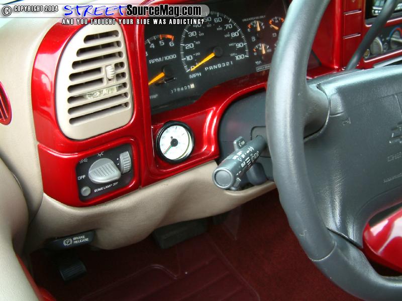 Trying to keep up with the exterior of the Tahoe, Greg would then turn his attention to the interior work. For starters he would paint the dash and vents to match the exterior along with wrapping the door panels in Burberry material.   Next the seats would be stitched up in the same Burberry material as the door panels to help tie things together. The stock bench seat in the rear would then be removed and replaced with two bucket seats.