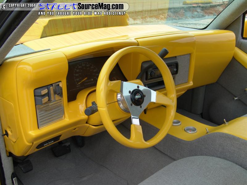 The exterior wasn’t the only think that was given the custom paint job. The dash was pulled out and completely shaved. The glove box, vents, airbags and several other panels were filled and smoothed before the yellow paint was sprayed.