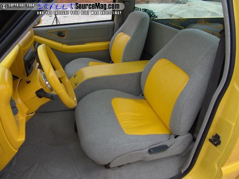 Since the motor was already out for the body dropped, Jerry and Amanda decided to do a little paint and chrome work to the 4.3 liter Vortec V6. The entire motor was painted with yellow and purple, while pullies and several brackets were chromed for a little shine under the hood. A polished intake and a few billet goodies were also added to clean up the engine bay a little.