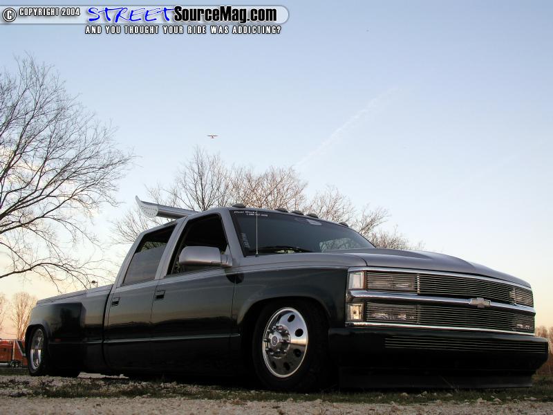 The first order of business was to plant the undercarriage completely on the tarmac. Kevin started up front by ditching the factory spindles with those from BellTech. Next the factory coils with Firestone 26C’s plumbed thru ½” line to SMC valves. For the back Kevin ditched the factory leafs and installed a Pete and Jakes chrome triangulated 4 link. Another set of Firestone 26’s were added to the rear for extra towing capacity these bladders too were plumbed thru ½” line along with SMC valves.