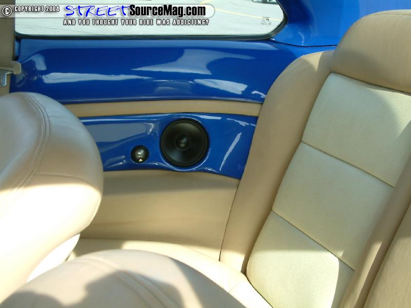 A set of custom-built door panels with painted inserts would then be installed. Next Erick would build some custom kick panel’s front and rear with painted inserts. The front kick panels would house JL Audio 6 ½’s while the rear kicks would be equipped with 5 ¼ and tweets. The rear deck would then be rebuilt with a sub enclosure housing 2 JL Audio 12w7’s. Pushing the system would be 2 100.1, 1 450.4 and 1 300.2 JL Audio amplifiers.