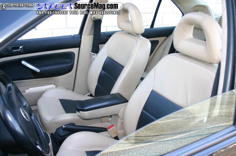 The VR6 motor was fitted with a Carbon Dynamic Air box by BMC, ABD big bore intake, VF-Engineering engine pendulum mount, and a Eurosport hidden tip exhaust. Manny can hug the corners at top speeds thanks to the Koni Adjustable shocks with Eibach Sportline springs, AutoTech front upper strut bar and front sway bar, Neuspeed lower front tie bar, AutoTech rear sway bar, RSD Trunk bar, and Speed-Styez upper inside seat belt bar. Manny’s Jetta incases some serious bracing.