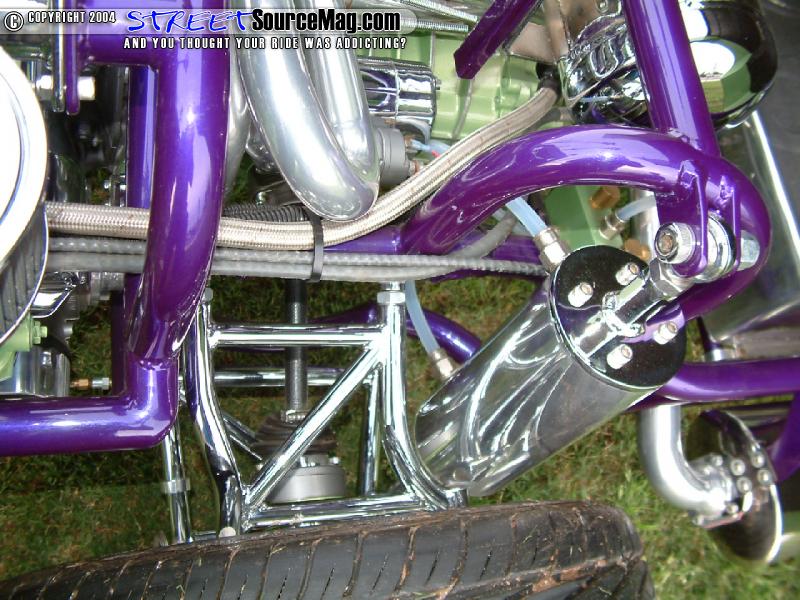 Utilizing air cylinders at all corners for adjustability the rear engine beast would need a set of Chassis Tech 2 inch drop spindles to bring the rear down with the front. To accommodate the new set up a Neal’s master cylinder would be utilized along with all new steel braided brake line. Now a rolling chassis, the body would be dropped 2 inches to bring everything level while on the ground and tucking the 19 inch ADR wheels.