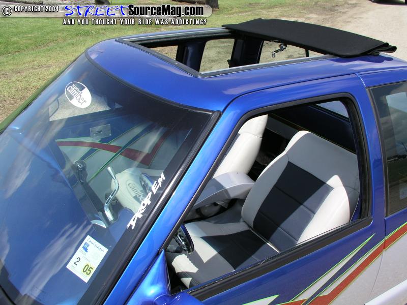 Keeping the stock front seats, the headrests would be removed and Top Hatch of Harrahan would stitch the seats in blue and gray leather. Next Mark would install a Colorado custom steering wheel with NC engraved in the horn button while a billet rearview mirror help bring things together. The custom-built center console also houses the Kenwood CD/EQ head unit while the sound comes through a set of Kenwood Exlone mids and tweets.