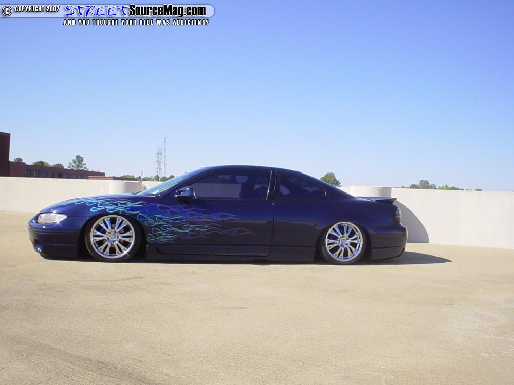 When it came time for the paint and bodywork, the choice was simple. Chad’s project would head over to Keef’s Rod & Custom in Sallis, Mississippi. With the American Sports Car Design GTX hood installed Keef went to work shaving the body smooth and spraying the Dupont Navy Blue Metallic and House of Kolor Ice Pearl. Before the clear coat went on, Keef then laid out a sick positive and negative flame design using Arrival Blue Metallic. The flames were finished off with some ghost images of trucker girls and chameleon shading. House of Kolor Lime Green was used to do all the hand pin striping. The rest of the exterior was dressed up using clear corner lenses and one of billet inserts in the hood, grill and bumper. The rear of Chad’s ride features an SLP GTX spoiler and cleared out factory taillights with led bulbs.