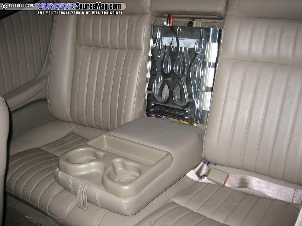 A Trenz flamed rear view mirror was also added along with billet flamed pedals and a/c knobs. The final touch was brought about with a set of NR Auto white face gauges. Not to be left out Chad’s truck features a custom trunk install with wood planks and polished aluminum strips, with black leather trim.
