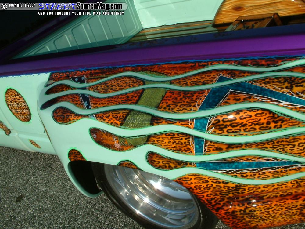 Next the rear fenders would be cut apart and widened by 3 inches along with now being 3 inches loner. With the new fenders in place they would then be molded into place. The bumper would be removed allowing the installation of a smooth rollpan finishing off the bodywork.