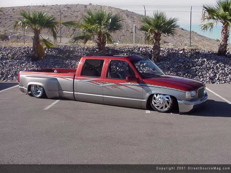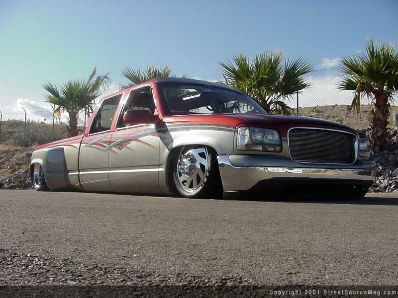 In February of 1999 Bill laid down a cool $28,500 to get things going. After a grueling 2 years of blood, sweat, tears and lots of money; Bill would find is show winning Dually being used for body laying spark displays along with towing the shop's enclosed trailer from sea to shinning sea. To start bringing the vision to reality, the crew at Ekstensive would begin their work on the suspension of the new shop truck. The front would be the first to receive the new make over. With utilizing a set of Bell Tech drop-spindles and KYB shocks, the Dually was well on the way to stardom. Next they would be quick to weld in a set of Ekstensive airbag brackets, which would house the Firestone airbags for ride height adjustability. To bring air to the bags at sudden response, the use of 3/8-inch airline along with Ekstensive valves would be the solution. The front now laying flat, it was time to move to the rear.