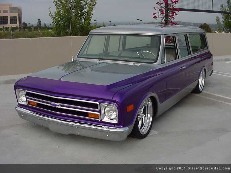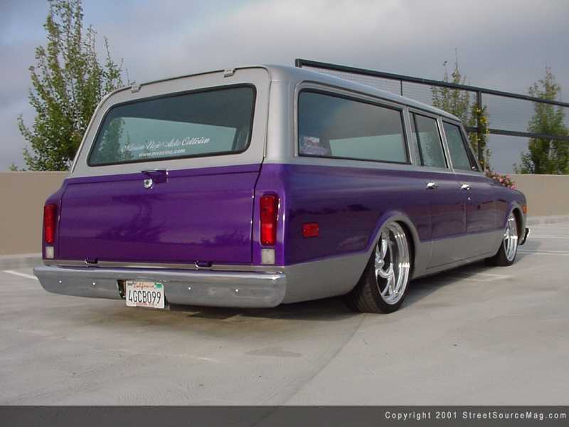 With the materials and knowledge that Mark possesses, the paint would become the first eye-catching element to this clean Suburban. Utilizing PPG paints, Mark decided to go with a two-tone paint job using Porsche silver along with a custom blended purple. After many coats of clear, one can see that time was taken to assure nothing but pure professional work was applied. Mission Viejo Auto Collision is responsible for all of the body and paintwork found on the '69 Suburban.