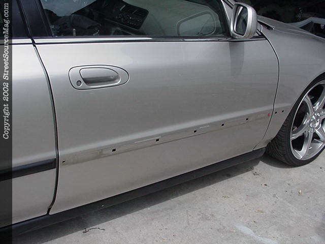 2. Don't worry about being gentle pulling off the moldings, your are shaving them so I doubt you'll be putting them back on anytime soon. With a little force just pull the molding back. This goes the same for the small molding on the front fenders. The plastic fittings holding them in will break off allowing you to pull them off. 3. With the front doors and fender taken care of, repeat on the back door. Get a flat head screwdriver or something flat to help begin pulling the molding back.