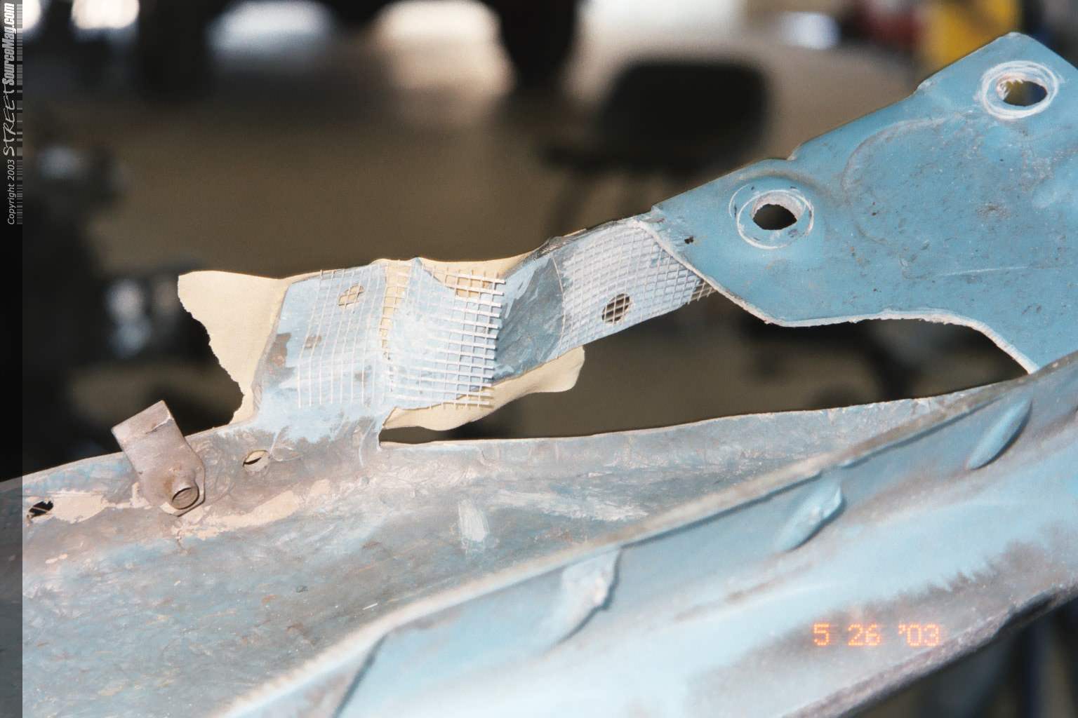 Here is another photo of the mesh in place. Next we apply 2 part epoxy the repair areas.