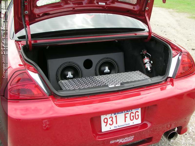The factory gauge cluster was removed and swapped with white face gauges. A MOMO steering wheel was then installed to replace the factory dull and oversized wheel. To keep the ride alive a Pioneer 7" LCD flip-out screen and a Sony Playstation 2 was added along with Alpine separates, (2) 10" JL subs and JL Audio amps all of which were installed by AC Sports in North Little Rock, AR. Not wanting to be left embarrassed at a traffic light Jeremy decided that a couple key upgrades would add some needed ponies to the already high output of the Honda F22 V-TEC motor. So with that in mind a DC Sport cold air intake, ViTech plug wires and a DC Sport headers backed by a pair of MagnaFlow 4" all stainless steel high flow exhaust were tossed into the mix. All of these contribute to Jeremy getting in some solid low 14 second passes at the local ΒΌ mile strip.