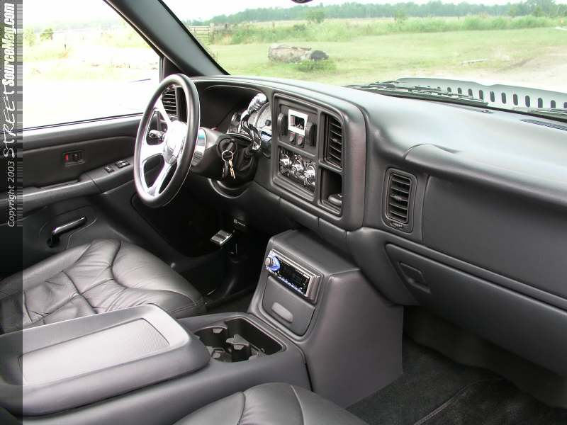 So Brooks opted for Budnik Tiller wheels in the form of 20x8 front and 20x9.5 in the rear. The front wheels were wrapped in a 245/40/20 Michelin Pilot skin while the rear received a 245/35/20 for better traction. Now that the Denali's outside was looking righteous it was time to give the interior the same treatment. So Brooks covered the factory interior in dark granite leather from KatSkinz. A Wabasto 41" electric sunroof was then installed to allow the Arkansas sky to shine thru. An Escalade instrument panel was installed to keep a constant eye on all functions. To finish the interior treatment off billet accessories were added to the now clean interior. Brooks decided that an Alpine CDA 7864 headunit would fit just perfectly into the GMC's buildup and backed it up with a combination of Kicker Comp highs, mids and subs. Alpine and Kicker amps were then installed to power the entire system.