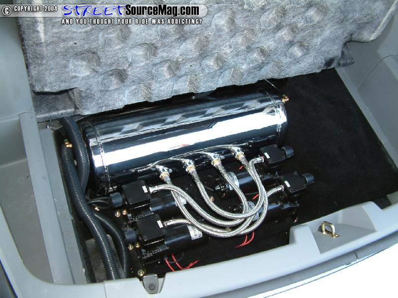 Starting out back first you’ll find a set of QA1 rear shocks with Firestone bags while the front is set up with an Air Ride Tech Shock Wave set up. Helping bring air to the set up would be the use of 4 Blitzluft 337 compressors, 7 gallon chrome tank, Air Ride Tech Ride Pro E controller and finished off with Ride Pro valves. Jay, part of the crew at Car Nutz handled all of the suspension needs.