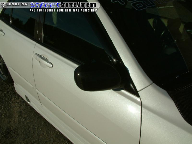 Moving back, Jimmy would replace the side mirrors and trunk lid with new carbon fiber ones. The crew at Car Nutz of Bellvue, WA, would complete the bodywork. Once everything was to Jimmy’s liking, the paint would be laid down as a pearl white for that over all baler appearance.