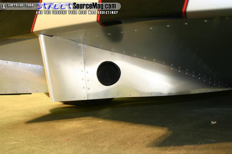 The graphics were outlined in urban assaults super stripes. Underneath the car Kindig installed a custom aluminum belly pan to match the F-1 style exhaust diffuser setup under the rear bumper.
