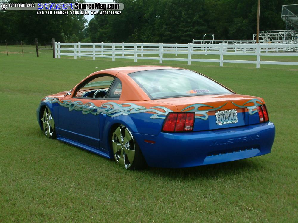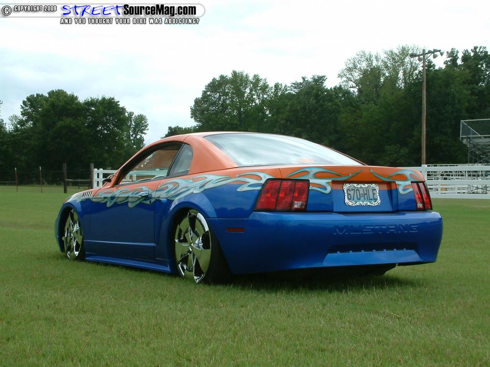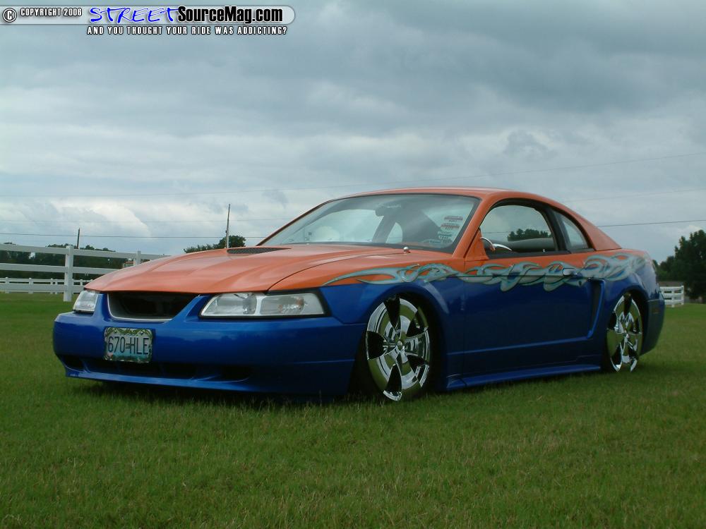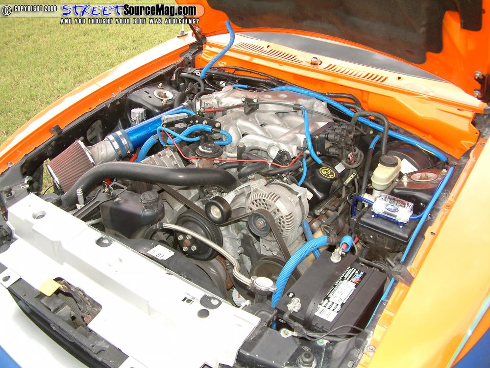 Needing to touch every aspect of the Mustang, Joseph would turn his attention to the engine bay. For starters the V6 would be equipped with a crankshaft out of a 4.2 F150. Next a stage 1 port kit by Michigan mustang would be installed. Helping with the eye candy Joseph would then install blue wire loom along with a polished upper intake. A set of Hedman headers with stainless 2.25 exhaust capped with a Flowmaster muffler would finish things up.
