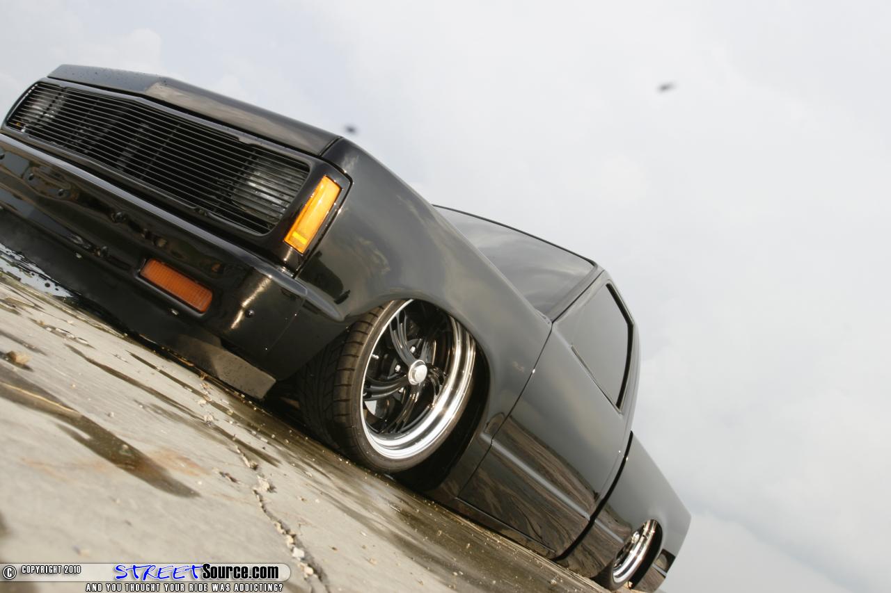 The LowdownRolling AttireWheels (Front):18x7 Billet Specialties GTX03 (Rear): 20x 8 Billet Specialties GTX03-wheel centers been painted black and the hoops left polishedTires (Front): Nitto NT555 225/35ZR18 (Rear): Nitto NT555 245/35ZR20Chassis ModificationsSuspension type: AirSuspension (Front/Rear): firestone 255c bagsSpindles/springs: two-inch BelltechValves: 3/8-inch SMC valvesCompressor: Viair 450Air line: 3/8-inch soft lineFrame mods: rear step notch and bridge with a Pete and Jakes modified four-linkFrame material: 2x4 square tubingGas tank: air tank that we had pressurized and converted to a gas tankDetail work: the frame is painted black to match the truck and the four-link and bridge is painted Viper Red to match the bedliner and interiorPerformed by: Justin Griffin of Twin States Customs City/state: Meridian, MS Body ModificationsShaved: Completely! Door handles, taillights, body line, tailgate handle, gas tank door, cab seems, cowl panelBody-dropped: 3-1/4 inchesBack end: Custom roll panTaillights: Hagan flush mount 12-inch street rod LEDsPerformed by: Eli Griffin of Twin States Customs and Josh “The New Kid” Ellis City/state: Meridian, MS PaintBrand and color: Sikkens Jet BlackStyle: slick as hellPerformed by: Eli Griffin of Twin States Customs City/state: ¬Meridian, MS InteriorSeats: Bench seatMaterial: Lipstick red leatherDash: custom made painted flat redDoor panels: lipstick red leather with black door insertsFlooring: torch red carpetHeadliner: lipstick red leatherGauges: Dakota DigitalPerformed by: seats by Tracy Swanner of Southern Upholstery and the dash and door panels done by Robby Odom and Justin McCary of Selective Audio City/state: ¬Meridian, MS Engine/PerformanceModel/Year: 2.8 liter V-6 Detail work: the motor has been painted Viper Red to match the rear suspension and the truck and the pulleys, alternator, air cleaner, and intake manifold have all been chrome platedPerformed by: chrome plating by A-1 plating of Tuscumbia, AL and engine painting by owner’s Dad Jimmy Carr City/state: ¬Meridian, MsSpecial thanks by owner:First and foremost to my son Hagan who is 3-years old and has required a lot of visiting with me at the shop rather than at home, my parents for this graduation gift 12-years ago, Justin and Eli Griffin of Twin States Customs and the “new kid” Josh Ellis for making this possible when it came crunch time to completely build this “murdered out” project in three weeks time. And as always can’t leave out the family with the stars and bars Relaxed Atmosphere.