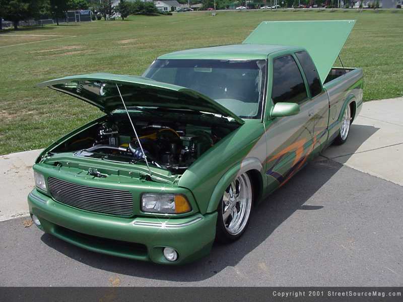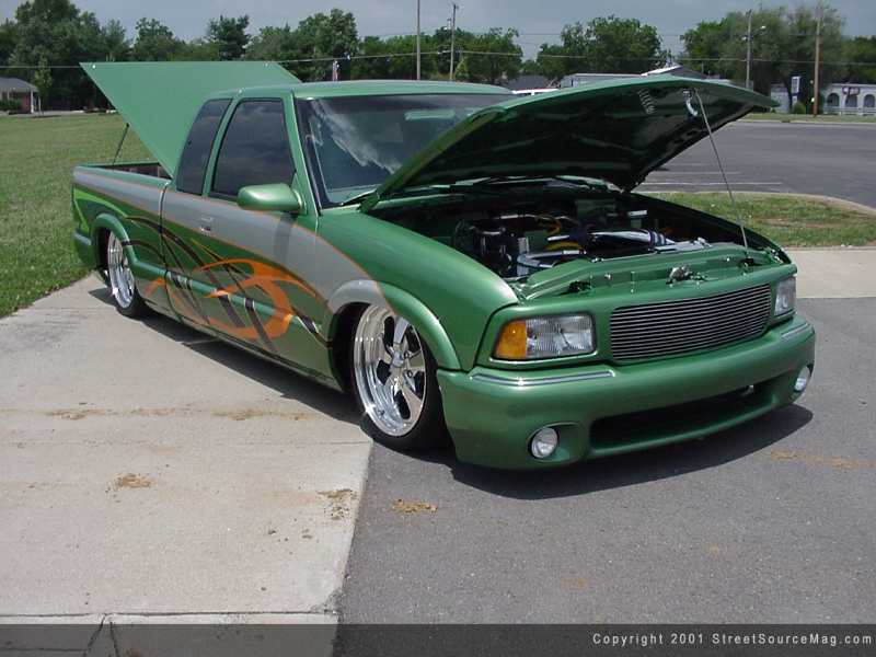 With the body looking how he wanted it, Brandon again allowed Bullock to complete the next task - a custom paint scheme. Starting with PPG Cosmic Green, Bullock laid down several layers until Brandon’s Sonoma had taken on a new identity. Before sealing it up with clear, Bullock laid down graphics using several colors including silver, purple, blue, orange and Get ‘Em Green. To make it stand out, Bullock went back over it and pinstriped the new graphics using several PPG colors. The graphics on Brandon’s Sonoma are different on each side of the truck.