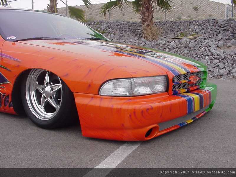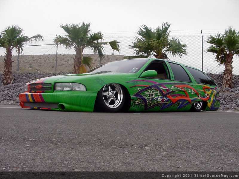 Bringing some class to the wagon, many things would need to be removed and set aside for the trash man to dispose of properly. Starting at the front of the ride Max went with a '95 Impala SS grille along with a California Custom USA front bumper.