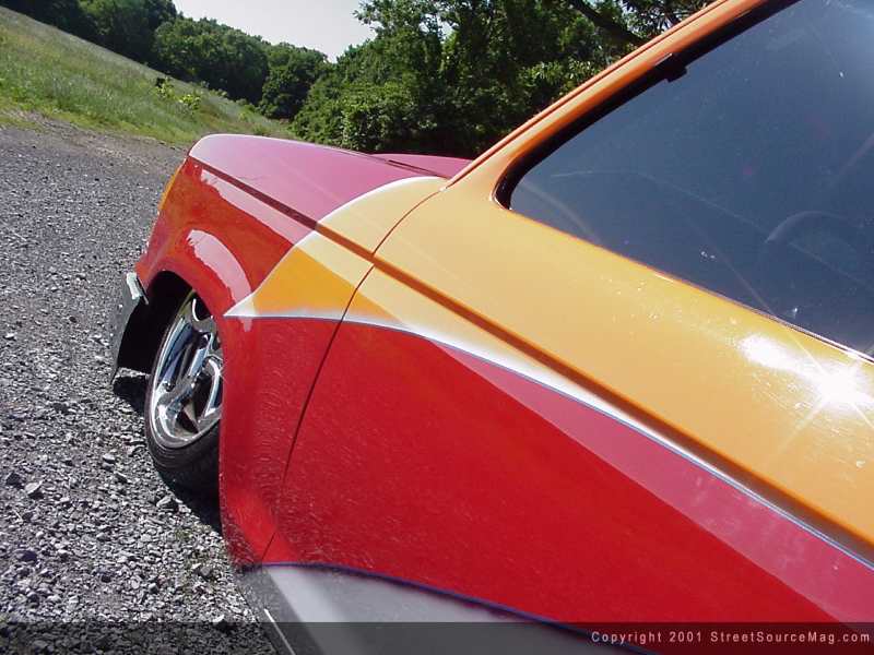 With the inner fender wells removed so the wheels had room when laid out, the engine was needing detailed in a way that would make easy clean up from show to show. Many items where painted and polished for added show points.
