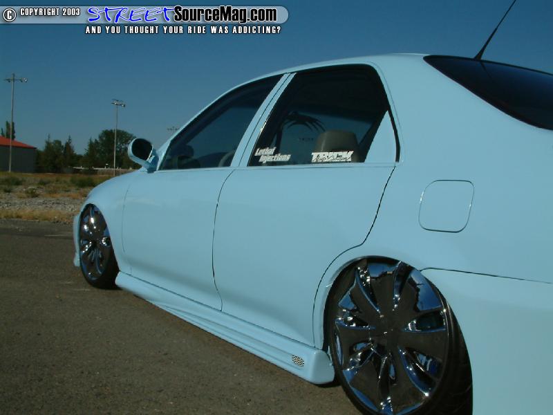 Next Sean would bring out the proper tools in order to shave the door handles, moldings, window squirters, and antenna, emblems and trunk lid. With a set of generation III projector headlights installed and Altezza style tails the transformation was almost complete. In order to finish off the exterior, Sean would have Rick Simmons of Salem, OR, prep the car and then lay down a smooth coat of Baby blue paint. Now Sean felt things were moving in the right direction.