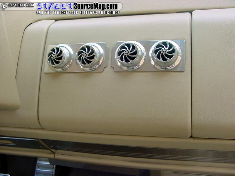 Moving to the interior this male stripper wanted something classy but eye catching. Mitch let mikes trim shop play with this part of the truck. While at Mike's they wrapped every piece of plastic in Cadillac cappuccino cream leather.  Working on the interior Mike took the factory seats and chopped them down for a more low profile look.