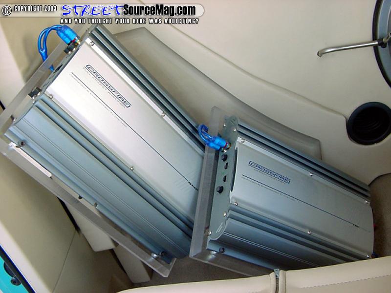 For sounds Mitch had to have something loud and obnoxious so he let the guys at performance audio take the reigns of this pimp wagon and install something even a midget would love. In the ext cab of Mitch's truck performance installed 2 150.2 TEK series amps and 6 crossfire p-1 15" subwoofers.   Adding to all this performance also installed 4 6-½-crossfire mids, 4 1" tweeters and for the brain unit Mitch went with a clarion in dash CD player.