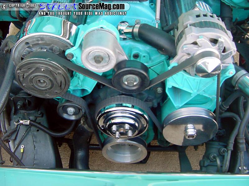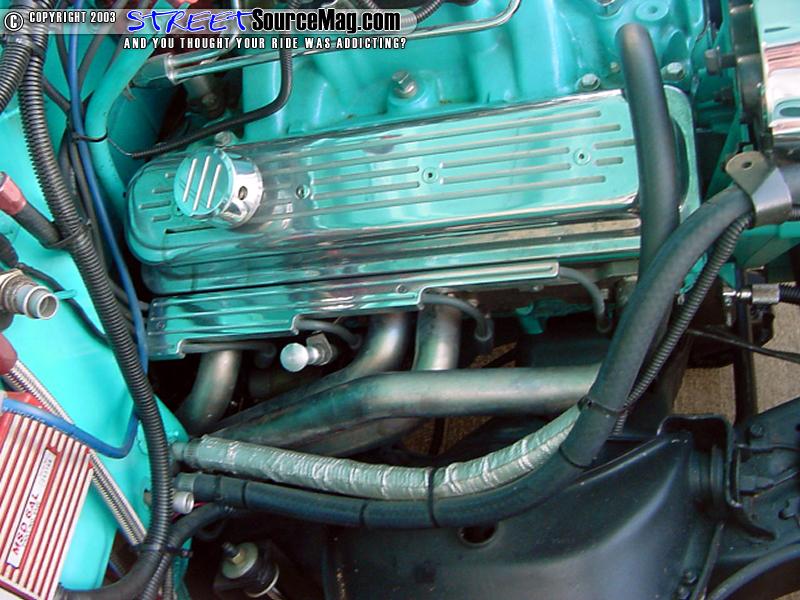 While the engine was out Mitch went through and added all kinds of goodies to the inside of the block to beef up this bucket. Along with all the horsepower parts Mitch didn't forget to add the dress up kit to this newly born engine.   Peety likes everything to be nice and clean so to do this Mitch and his crew of urban commandoes went in and cleaned up every bit of wiring possible and hid everything to give this engine a topnotch show quality appearance.