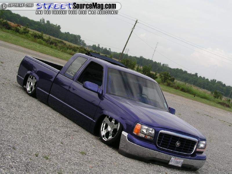 Once the body of the truck was straight and clean it was time for Brent to lay down the shiny stuff. The paint of choice was a Dupont Royal Sapphire Pearl Metallic that truly brings the Cajun Caddy to life.  Once the paint was dry Brent buffed her to a shine and added a set of late model Chevy mirrors that were painted to match and then took apart a set of Euroclear taillights and spayed the insides to match the truck. Last but not least a StreetBeat sliding Rag was installed into the roofline of the Caddy.