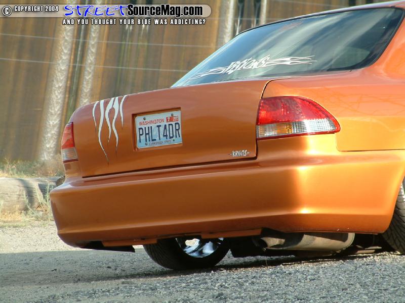 The taillights would then be swapped out with ’00 taillights and the inner trunk lights would be shaved. To bring out a smoother appearance down the lines, the side moldings would be shaved while another club member, Chad Mauer, would mold a custom license plate box into the trunk.