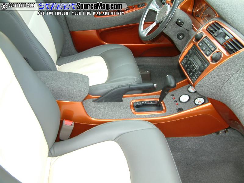 With the smooth sweet exterior, Tanya would have Jason next get down on the interior, his specialty. For starters the dash would be wrapped in tweed while the control panel would be shaved and the vents painted to match the exterior. The door panels would then be housed with half tweed and half paint to help pull the exterior feel into the interior. The headliner would also be applied with the same gray tweed with flames embossed for that extra custom look.