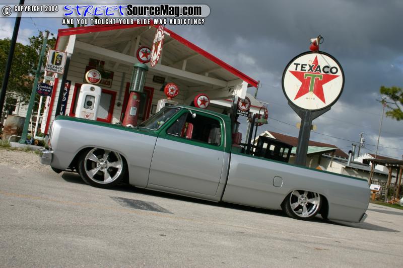 Getting things moving, the rear frame rails would be notched over the rear end with 1/8th plate by Tommy’s of Vero Beach. A set of 33-inch Chassis Engineering ladder bars with panhard bar would then be installed to help bring the rear down and help keep things stable.  For adjustability, 2600lb Firestone bags front and rear would be installed along with the proper valves, compressors and air tank. Up front 2-inch DJM drop spindles would help bring things to a lower level. To help leave more room upfront for the 20-inch Intro Vista wheels, the battery would be relocated into the bed. He’d have 245/35’s Nitto Extreme 555’s upfront while the rear Intro’s would be wrapped in 275/30’s.