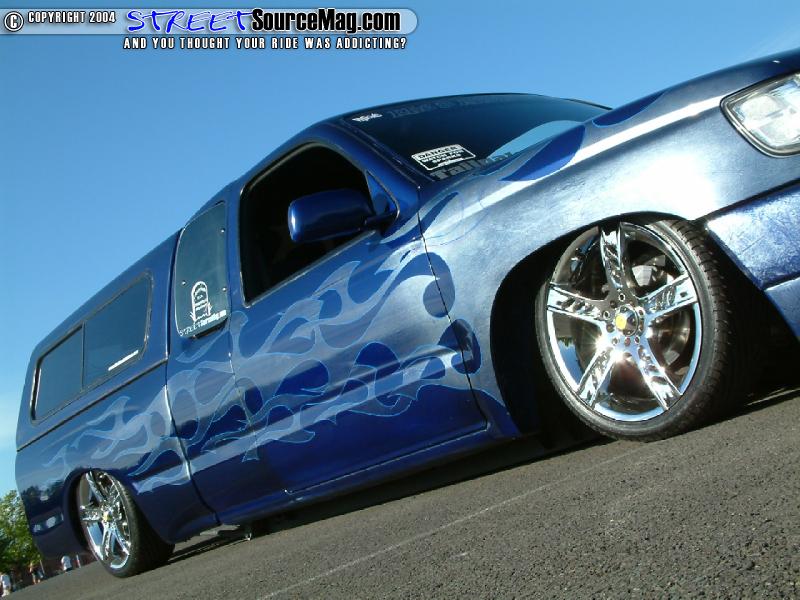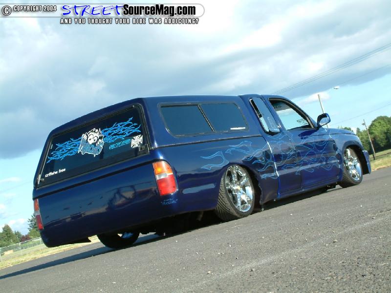 Needing to adjust the ride height Scott would first work the rear frame rails. After they were boxed and notched for added room, he would then install a reverse triangulated 4-link allowing the ultimate in low.   Next Scott would install air ride at all 4 corners used to help bring the Tacoma down lower to mother earth and to help tuck the 17 inch Focal F-5 wheels.