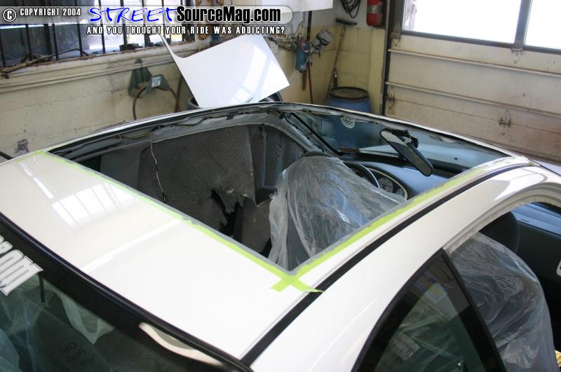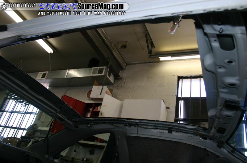 Some people say they have used sawzalls, nibblers, power metal shears, and cutting discs. Whatever you choose to do remember to cover your interior so that the metal shavings and sparks don’t hit anything that you don’t want them to. Especially your windows! After cutting the center section of the roof out remove the piece from the car and begin fitting your frame assembly. Because of the angle of roofs in most cars you will have to cut stress reliefs in the frame assembly to be able to bend it to fit the roof.
