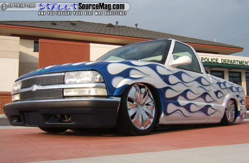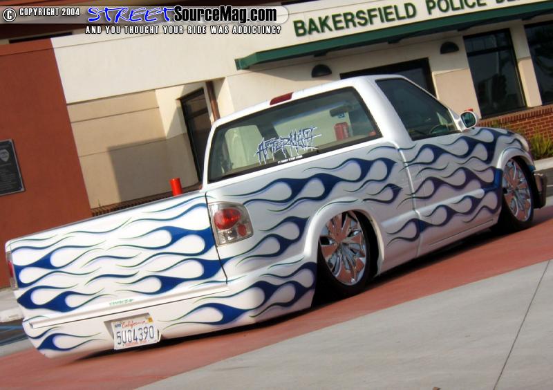 His 2000 S10 has grown in the years that he has had it. When Matt first picked up the truck it was treated to a nice set of Centerline 17 inch wheels and was hammered because as you may know, Bakersfield is quite the mini truck town and stock just does not cut it. Yet that wasn’t enough, then it was time to bag the truck, so he went and saw Kent at Krazy Kustoms in Bakersfield and they reworked the suspension using a reverse 4-link, so his truck could lay frame.