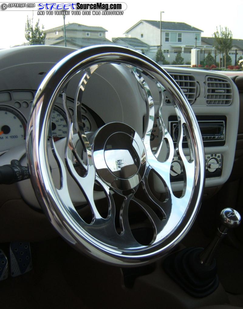 But, before he threw the seats back in the truck, he added a little flame stitching to tie in the exterior to the interior. Matt also had some of the interior pieces such as parts of the door panels, and dash painted by K-Daddyz to match the white of the exterior. Then Matt added on a Colorado Customs “Fire” Billet Steering wheel for an extra bit of flair and billet shifter and window cranks to add a little more old school to the project. The last portion of Matt’s truck that needed to be touched was under the hood. Matt started by adding a Chrome Intake along with a nice set of Chrome headers. Jacobs Electronics plug wires and Flowmaster Cat-back exhaust also helps little Matt’s 4 cylinder get up to speed a littler quicker.