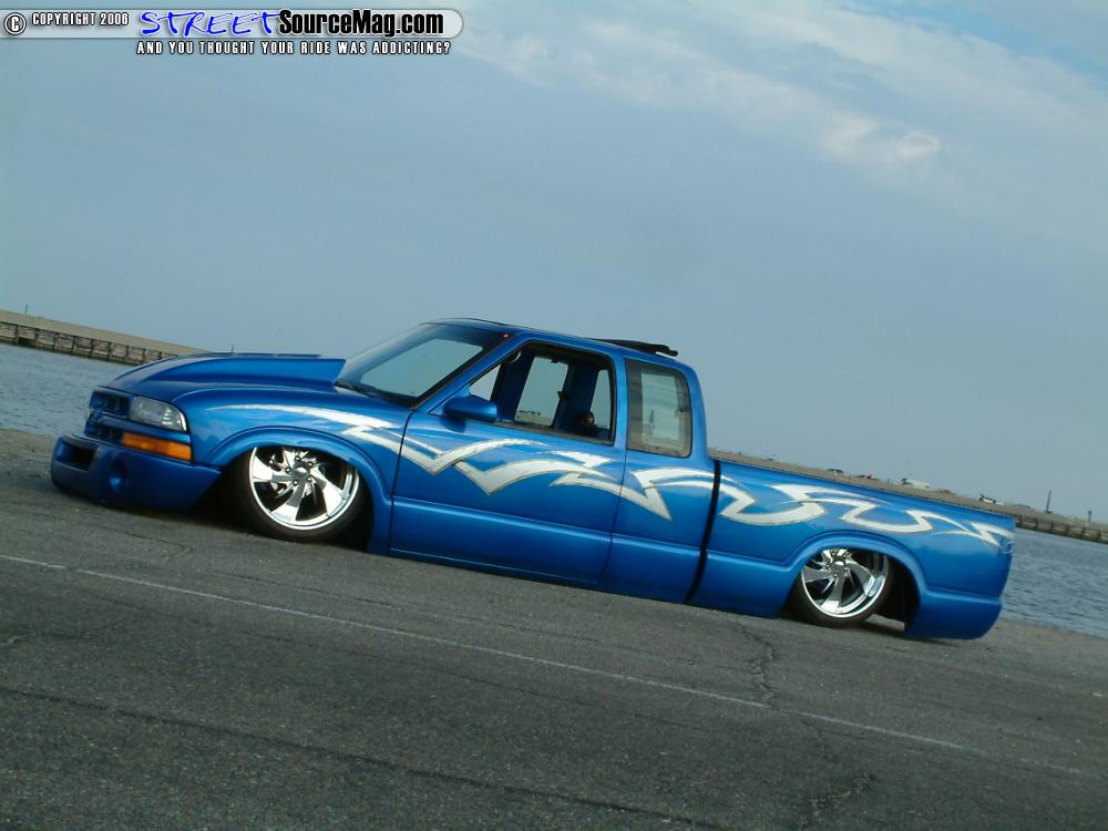 A set of ’98 S10 headlights would be mounted upfront while the taillights, tailgate, and emblems would all be shaved. Adding the finished touches Jason would set the doors suicide style and install a ragtop into the roof along with sheet metal and molding the entire inside bed walls and floor.