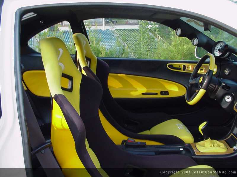 Next, Kusoku sport seats were installed and covered in yellow and black materials, once again performed by Hotrod Customs’ experts. To tie down the interior, a set of MOMO pedals were installed along with a MOMO steering wheel.