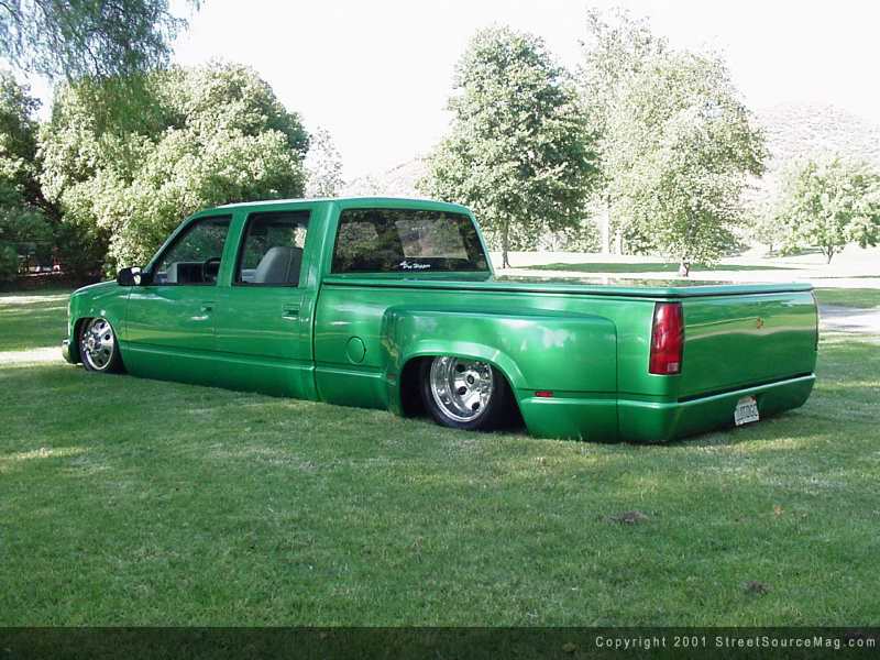 When Chad purchased his 1993 Dually back in 1996 his mind pondered on what could actually become of it. So, he called on Bobby McCurdy and Chris Daley of Totally Polished to start putting this 93’ Chevy on the ground. Bobby immediately began with the air bag setup starting with a two link and step notch in the rear that was custom built by Totally Polished. With the rear air bags taken care of they called on Pro Hopper for a front hydraulic setup. With the truck now laying frame Chad still didn’t think it was low enough, so after talking to Bobby McCurdy they decided to go with a three-and-a-half inch body drop.  | It just wouldn’t be right for the guys of Totally Polished NOT to lay the body on the ground. |