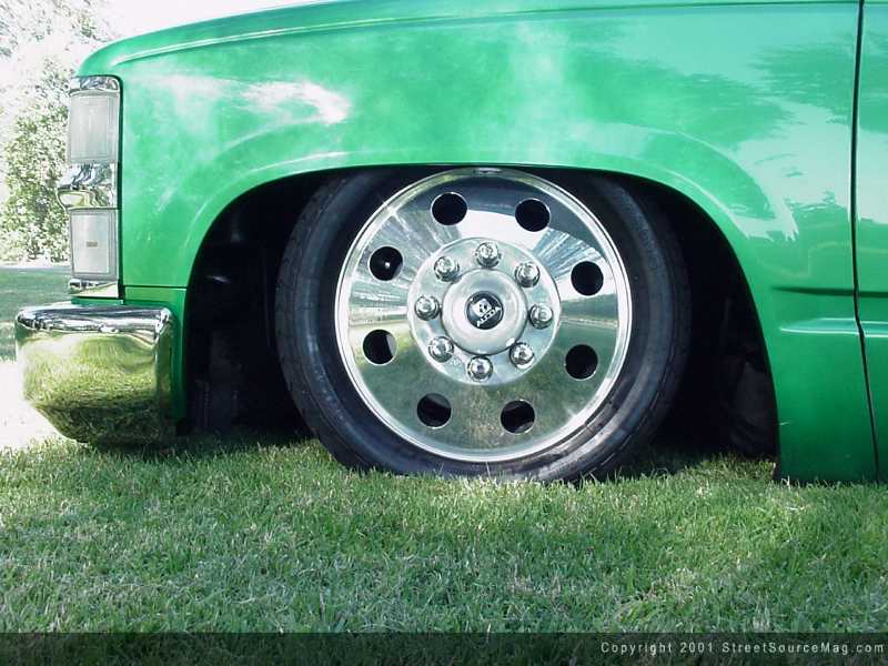 With all this said and done Chad decided to bolt on a set of sixteen-inch Alcoa Wheels with some 205/55 series tires. With the trucks paint and suspension now done Chad dropped it off with Mike Cox of Professional Autosound and Security in Westlake California. Mike began stripping the seats of their factory cloth and immediately doing everything up with light gray leather and tweed with tribal graphics incorporated throughout the whole cab.