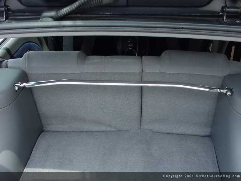 It took a ton of phone calls, e-mails and shipments of different springs to get the correct suspension set up. What he ended up with was Carrera coilovers. The coilovers have a 300lb rating on each front corner and 275 in the rears. Now that the rims where tucking it was time to stiffin the Saturn up. With that, a SPS 3-way adjustable anti-sway bar was installed along with an SPS front strut brace. Since Dennis had some knowledge in fabricating, he decided to fabricate his own rear strut brace to stiffin up the rear. To help the stopping ability, KVR front brakes were utilized. Now knowing that he wanted to lean towards the performance side of the scene, Dennis started looking into building up the engine. Starting with the 1.9 liter engine, a set of vitek wires, hot shot header ceramic coated were installed and 2 5/8ths inch piping from the cat back along with a Borla muffler were added to smoothen out the sound. Now that the engine was open for breathing, Dennis found himself adding a Hotshot intake, and JG throttle body. To bring some eye candy to the engine, Dennis decided to polish the valve cover.