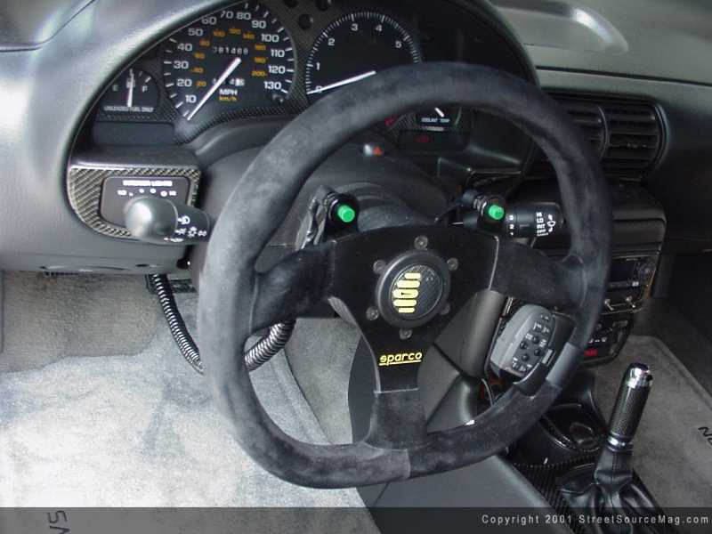 With everything complete except for the interior and stereo, Dennis turned to his friend Tim of Dropworks in Fredericksburg, VA. Tim spent a lot of time in the car welding and measuring out the seat brackets to bolt up the Sparco EVO seats. With the seats now bolted in, the interior was set up with velour inserts which were stitched by Keys Upholstery. The next step would be to remove the stock steering wheel and seatbelts and replace them with products provided by Sparco.
