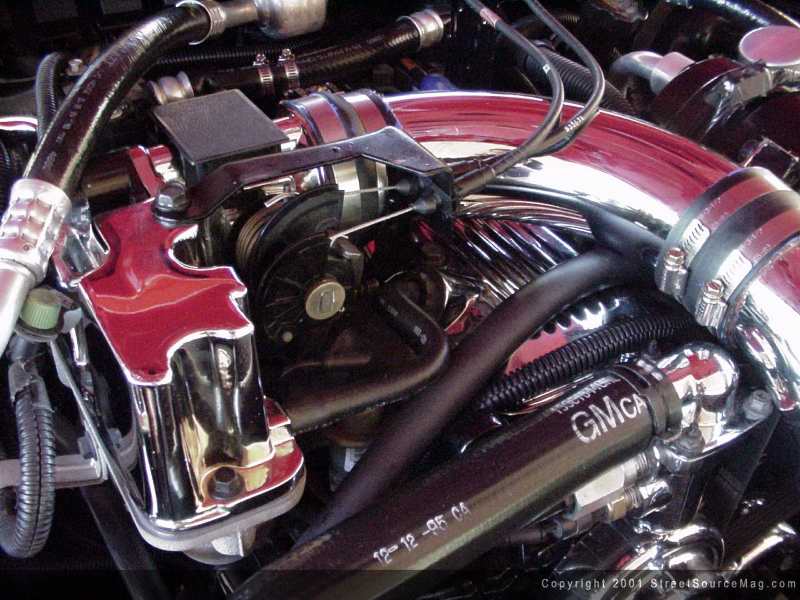 To complete the over all show aspect of Kent's ride, the engine bay couldn't be left alone. Already sporting the beast of a V6, many things would need to be done to make him happy. For starters, a Sport Truck Specialties chrome air intake would be installed for added performance.